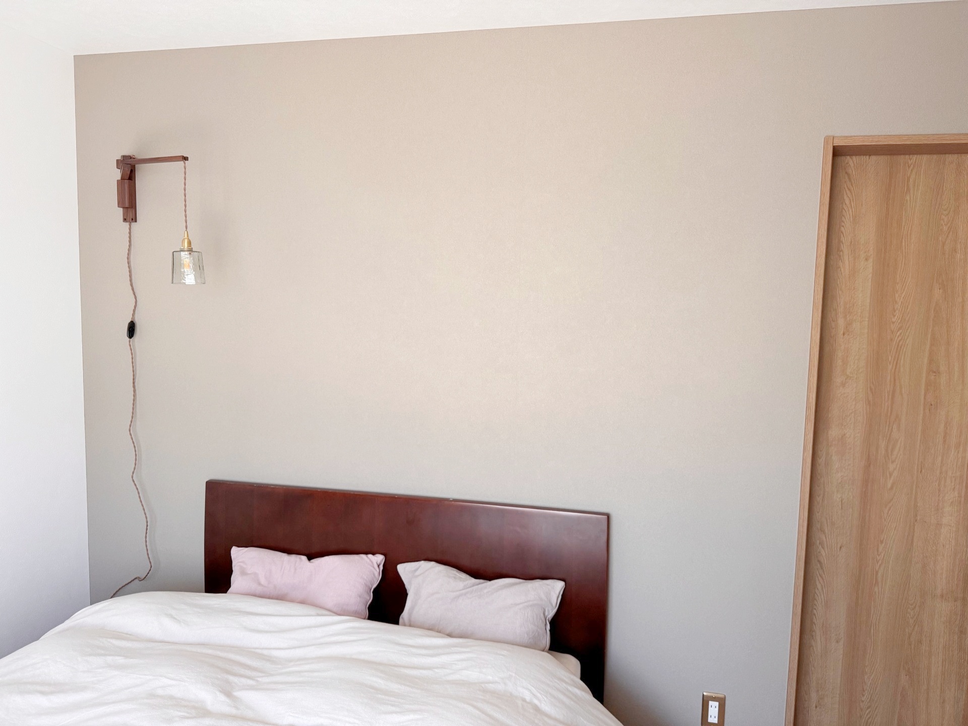 お客様より、寝室のベッドの向きを90度変えてベッドヘッド側の壁面の1面のみ壁紙を貼り替えて、