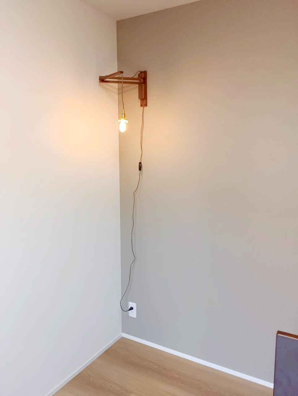 今まで照明がなくもちろんコンセントもなかった壁に、新たにお気に入りのブラケット照明を取り付けたいとのことで、DIYは断念されました。