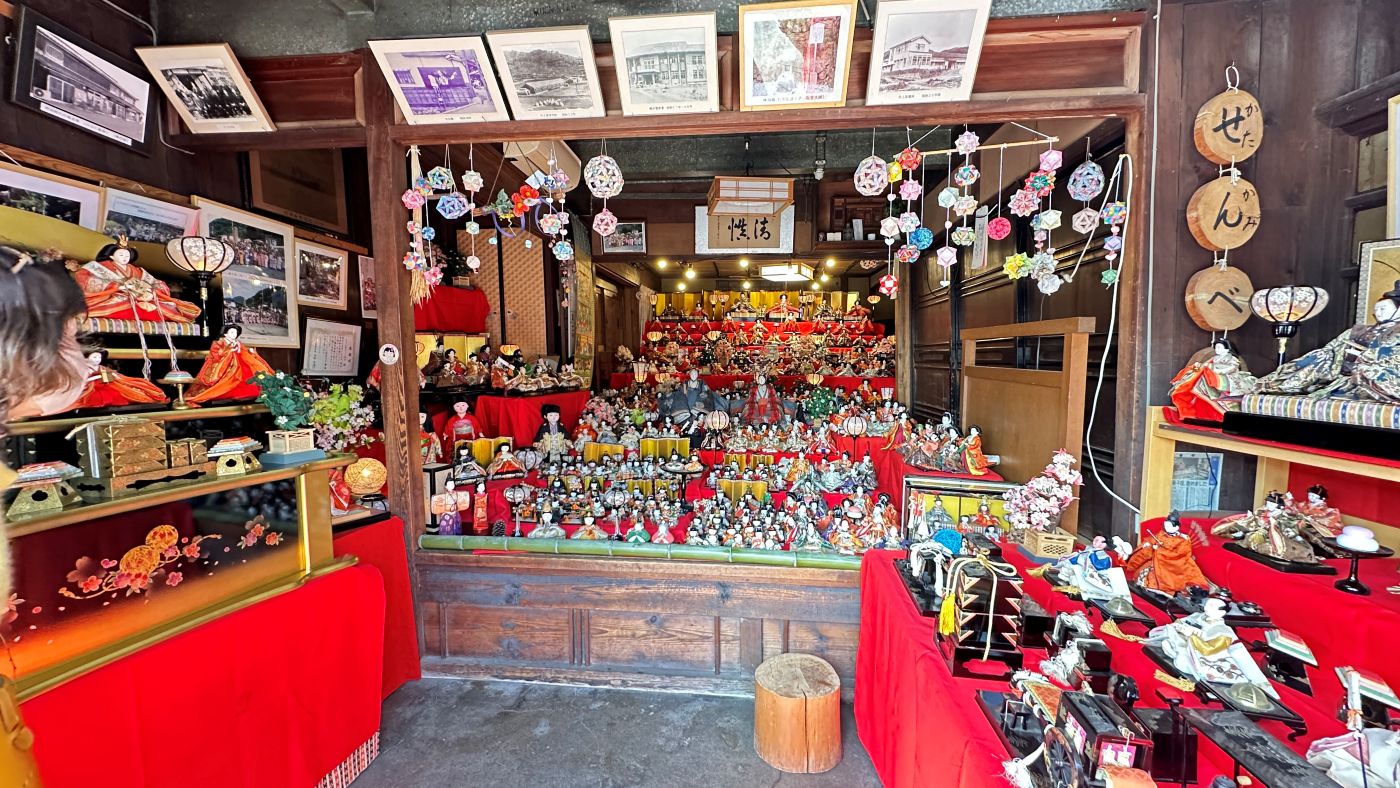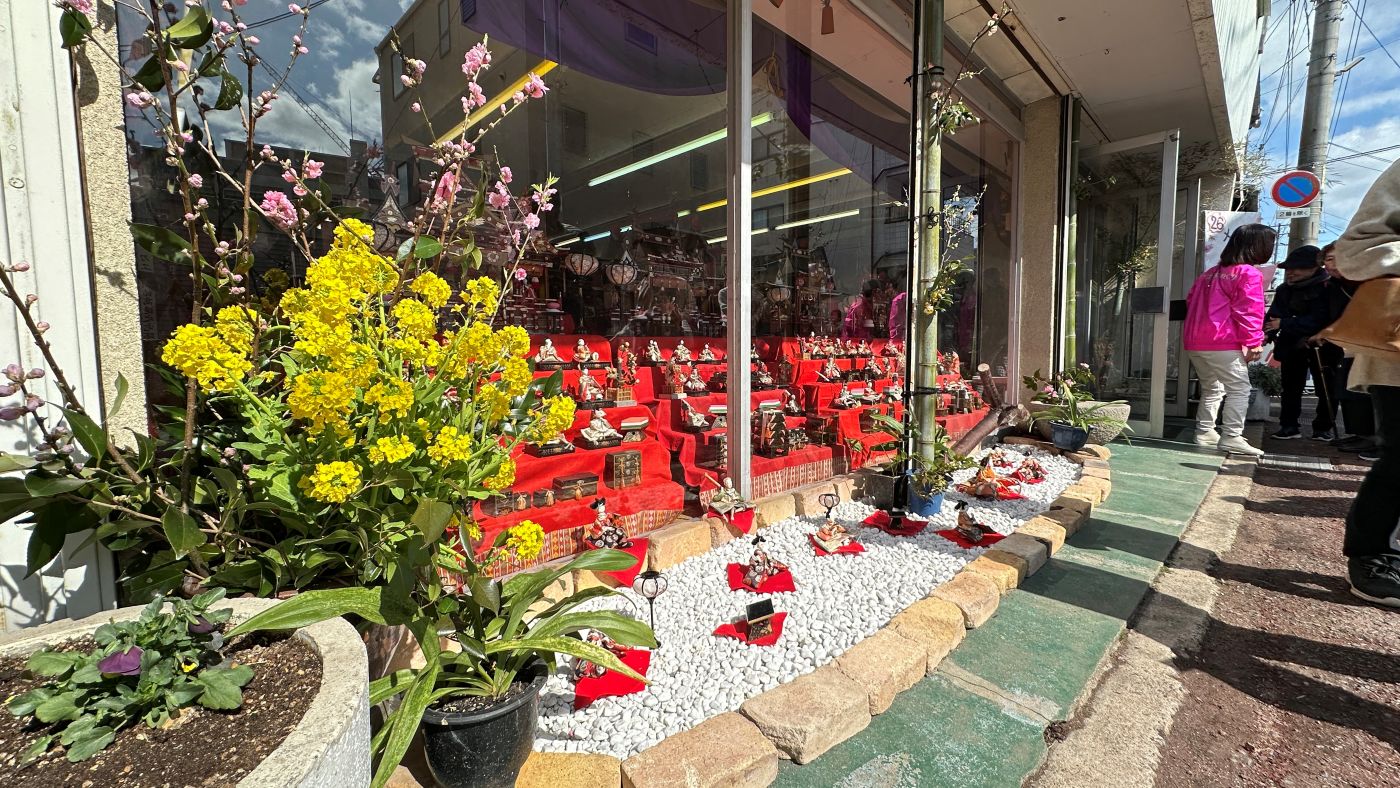 商店街の家々、お店、路地の奥、神社・・・いたるところにお雛様が飾られ、