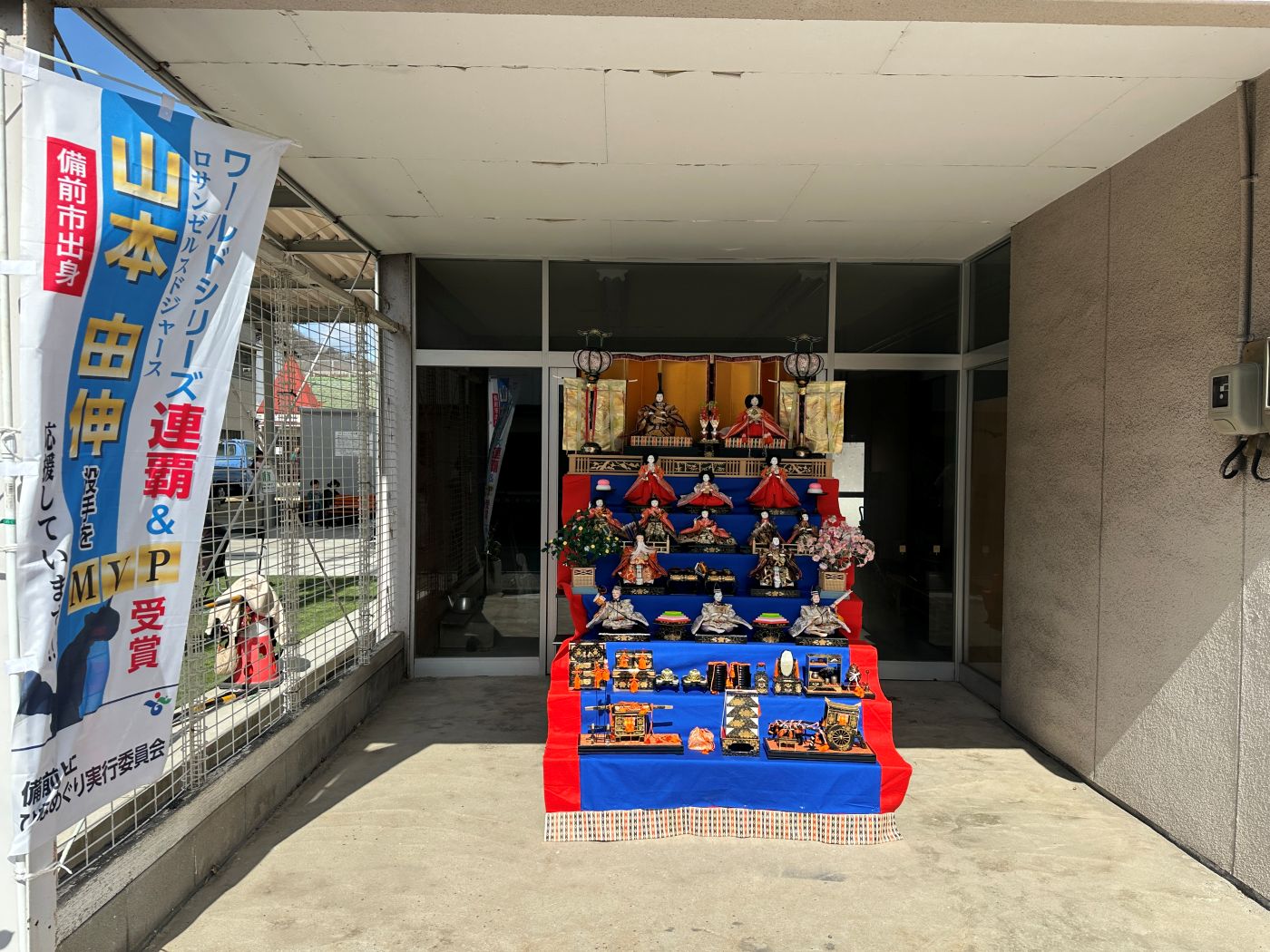 今年は備前市出身の山本由伸投手にちなんで、ドジャーズカラーの青い毛氈のおひな飾りも♪